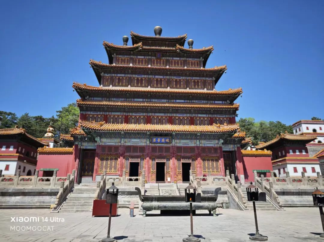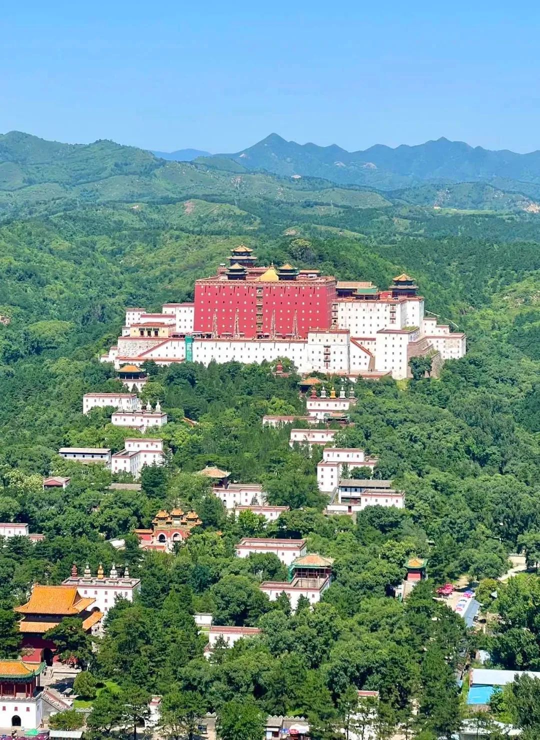 昨天晚上有读者在评论席贴了一张他拍的照片,我今天去不到那个拍摄位置了,借他的转发一下。普陀宗乘的主体宫殿高度大概是西藏原版的37%,缩小版本了,没去过西藏的先去承德看看也不错