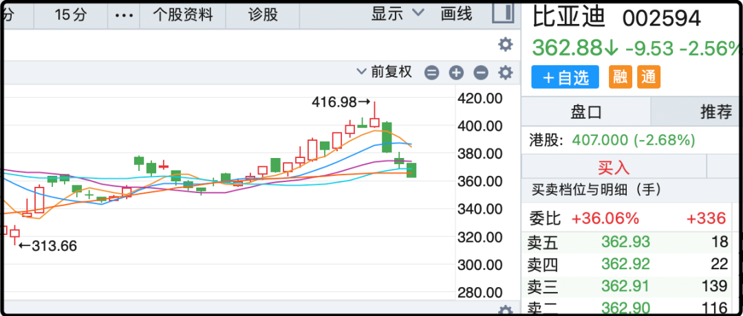 最近在风口浪尖上的比亚迪股价出现三连跌,-6%、-2.2%、-2.6%,多少还是受了一些影响,后续关注电动车行业的发展和比亚迪的销售数据,总的来说我个人不认为迪子目前有类似于恒大级别的风险,两边还是差挺多的。