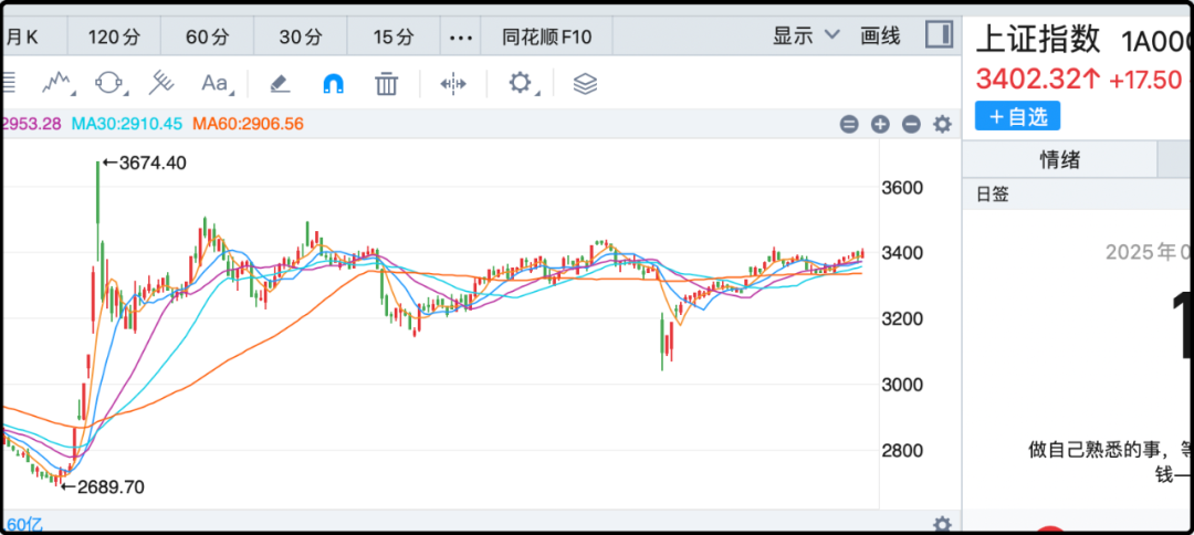 从去年10月起,上证就一直在3400点上下震荡徘徊,此处也成为了筹码成本密集区,大盘涨到这个位置肯定会面临压力,因为总有一些解套的筹码会选择抛售,这是人性使然。浮亏死扛一点也不难,解套不卖才是真考验。