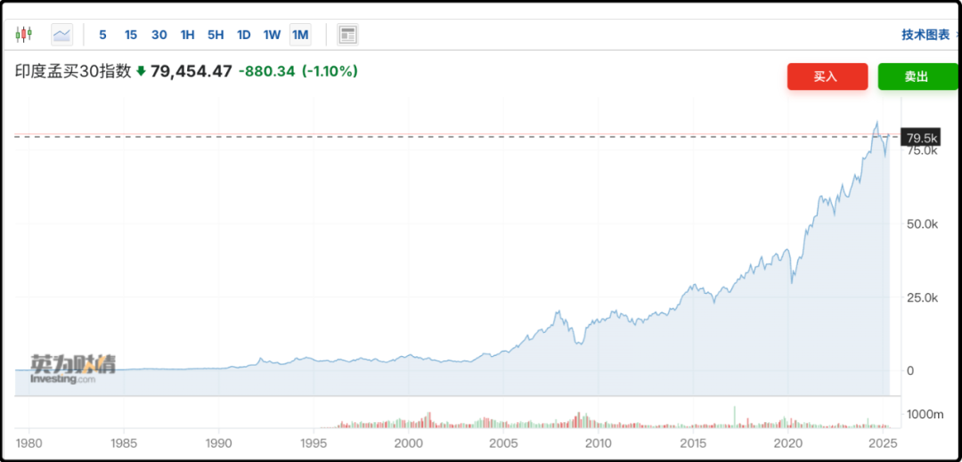 先顺着昨晚的说,印度股市的表现是很好的,单看k线的话2000年之后的走势不输纳斯达克。